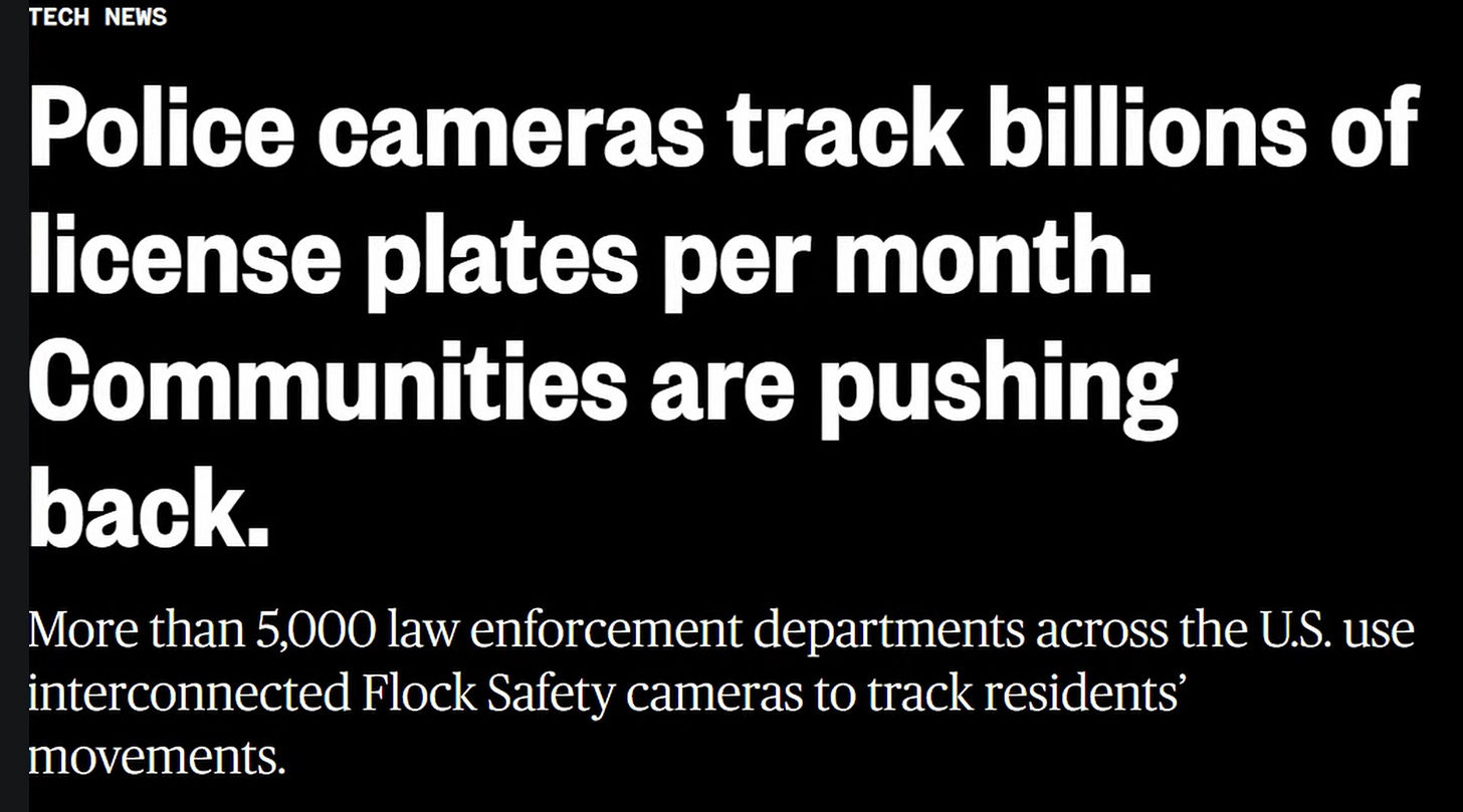 On that topic, have you heard of a company called Flock Safety? Most haven’t but rest assured, their cameras are everywhere. Flock Safety cameras operate in thousands of communities across most US states now. They’ve deployed, AI surveillance camera systems nationwide. Apparently they are already scanning something like 20 billion license plates every single month. Are you aware of this? I would assume most aren’t.