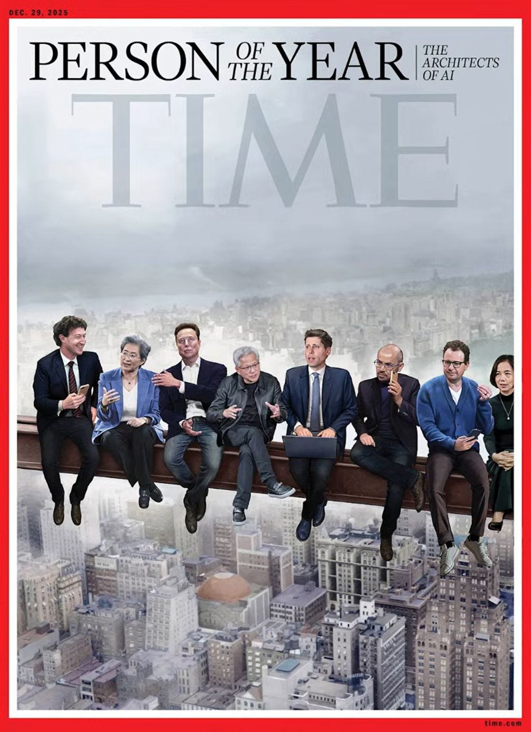 Back to what Time Magazine just did — they crowned the person of the year for 2025. And who was that again? The key architects of AI, that none of us asked for. Jensen Huang, CEO of NVIDIA. Sam Altman, CEO of Open AI. Mark Zuckerberg and Elon Musk. All CEOs of AI-driven companies.