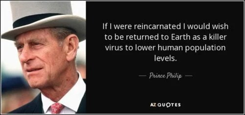 Prince Philip and Prince Charles are the most visible symbols of this train of thought. Both spoke with the utmost callousness about the need to get rid of unwanted people. The Duke of Edinburgh said: “If I reincarnate, I wish to return to earth as a killer virus to lower human population levels.” More recently, Prince William argued for urgent depopulation efforts in Africa. “Africa’s rapidly growing human population is to double by 2050. There is no question that this increase puts wildlife and habitat under enormous pressure.”